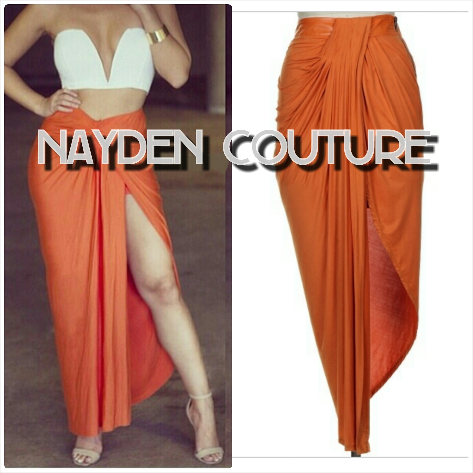 HOT & SEXY Orange One Slit Drape Asymmetrical Skirt